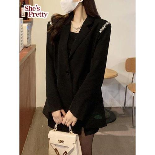 FANSYLI 스팽글 정장 코트 봄가을 여성 신상 캐주얼 반짝 자켓 상의 패션 클럽 무대 공연 긴팔 정장 코트 W2411N11