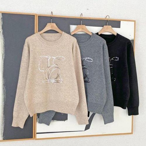 [다잇템]여자 스팽글 U넥 필기체 미색 롱슬리브 니트