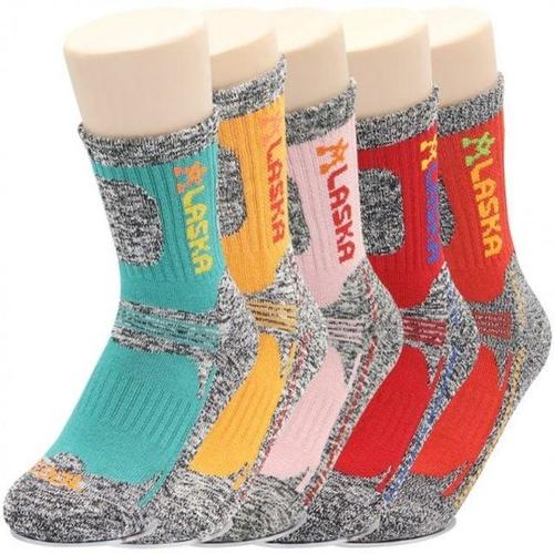 남녀공용 메리노 울 중목 양말 5켤레, 겨울용 보온 두꺼운 안감 아웃도어 스포츠 타월 양말 (하이킹, 캠핑용)