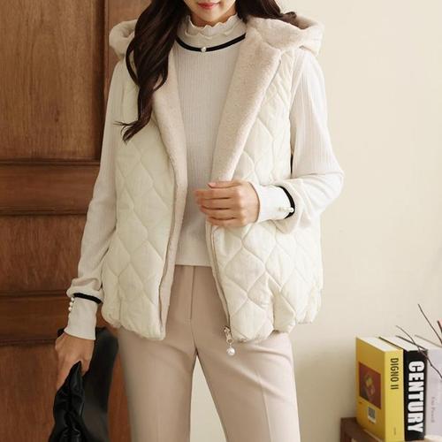[다잇템]여자 페이크퍼 후디집업 FW 패딩조끼 베스트 (9317163A)
