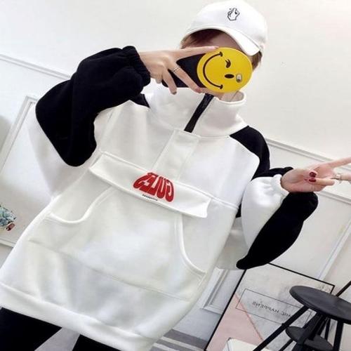 [셀러허브_여성트랜드패션]맨투맨 하이넥 기모 2컬러 스포티룩 남여공용 겨울 트렌디