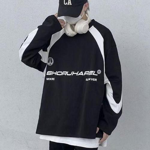 [셀러허브_여성트랜드패션]스포티 캐주얼상의 스트릿웨어 티셔츠 루즈핏 남성 맨투맨 스트릿 긴팔