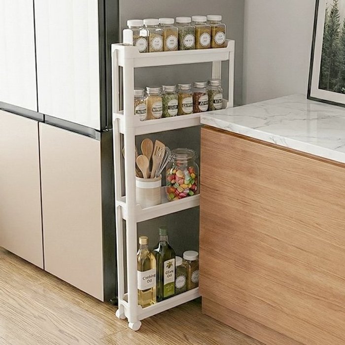 벨리카가구 머스캣 틈새수납장 이동식 틈새장 폭좁은 얇은 슬라이드 다용도실 베란다장 600