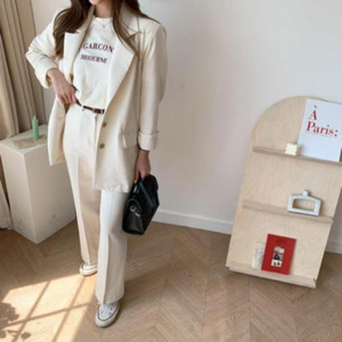 여성 가을 깃털 정장 코트 하이웨스트 일자 슬랙스 세트 I61Z3D KUK3