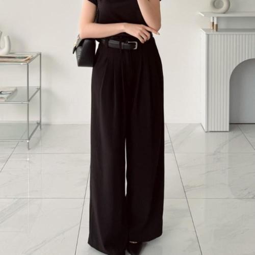 [옷자락] 여성 오피스 와이드 핀턱 벨트 세트 롱 슬랙스