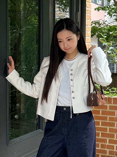 [더웨이나인]여성 링 그레이 자켓 정장 노카라 회색 자켓 슬림핏 쟈켓 프릴 자켓 면접 오피스 캐쥬얼 (55..