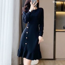[끌레아]여자 겨울 데이트 룩 검정 롱 니트 원피스 슬림 패션