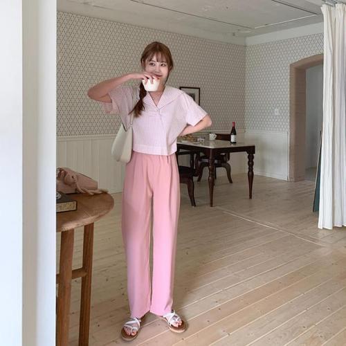 여성용 시원한 5부 와이드 팬츠 하이웨스트 슬림핏 빅사이즈 데일리 오피스 정장바지