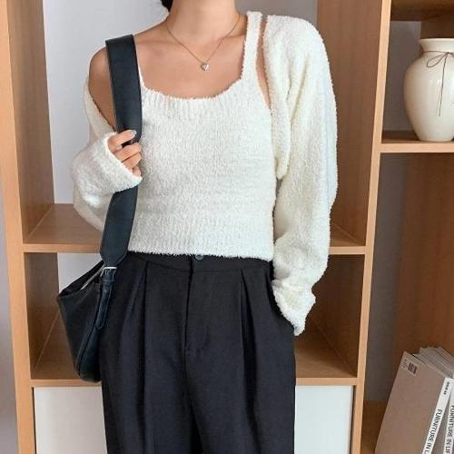 [다잇템][다잇템] 여자 니트뷔스티에 슬림 크림볼레로 가을레이어으 세트_18930500_588872