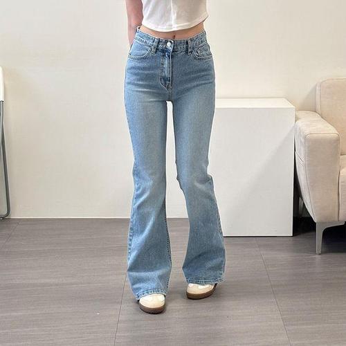 [옷자락]여자 썸머데님 스판 슬림핏 연청 부츠컷 워싱 청바지