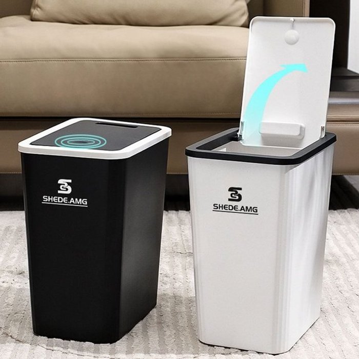슬림 틈새공간 사각 원터치 화이트 휴지통 10L