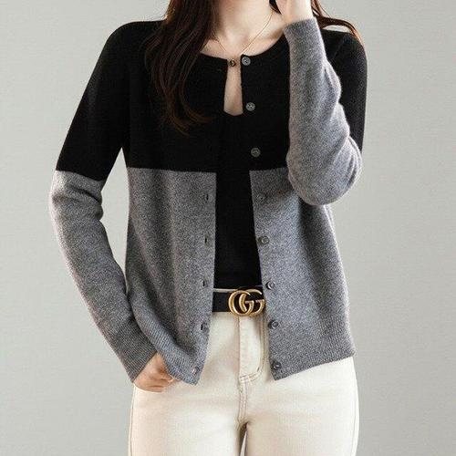 [핑크엘리제]배색 슬림핏 라운드넥 니트 로레논니트가디건