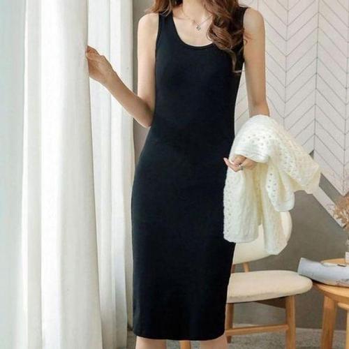 여자 민소매 모달 슬립 이너 원피스-2p 블랙+스킨 속치마