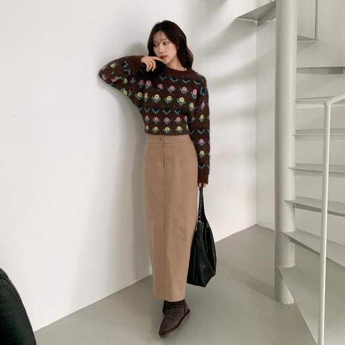 갤러리아_[25FW]백 슬릿 니트 롱 스커트(7215450903)
