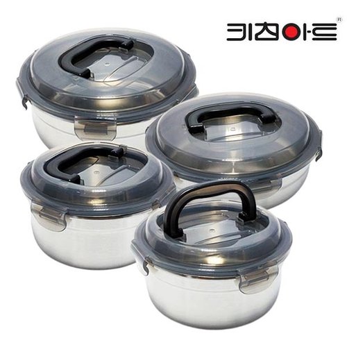 키친아트 피앙세 스텐 원형 핸디 밀폐용기4종세트