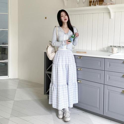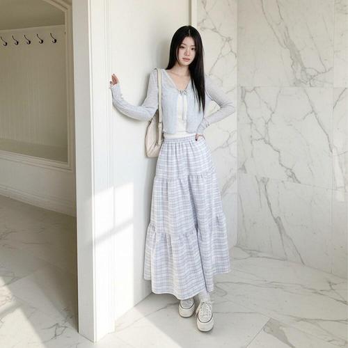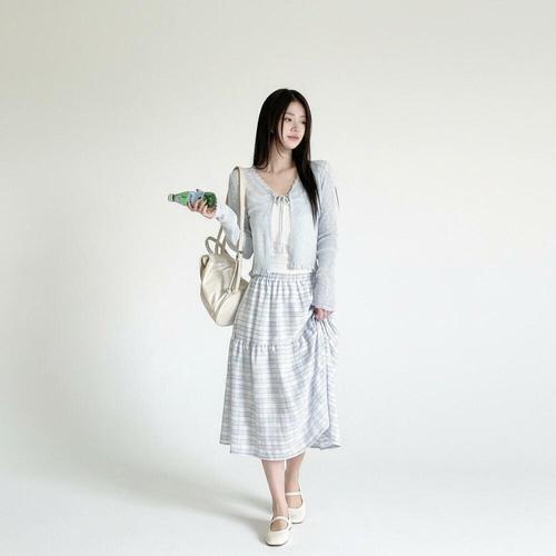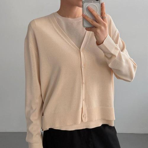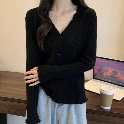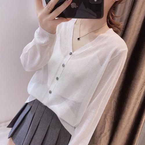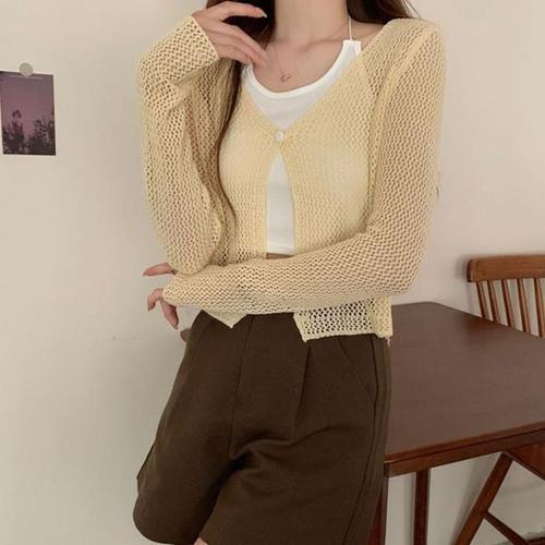 [옷자락] 여자 얇은 니트 브이넥 시스루 봄 커버업 긴팔 가디건