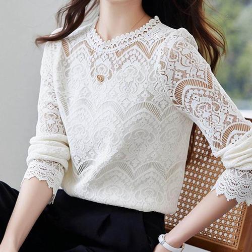 [에이치플러스몰]여성 시스루 레이스 블라우스 1P 데이트 하객룩 셔츠