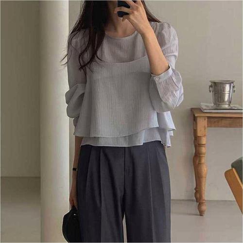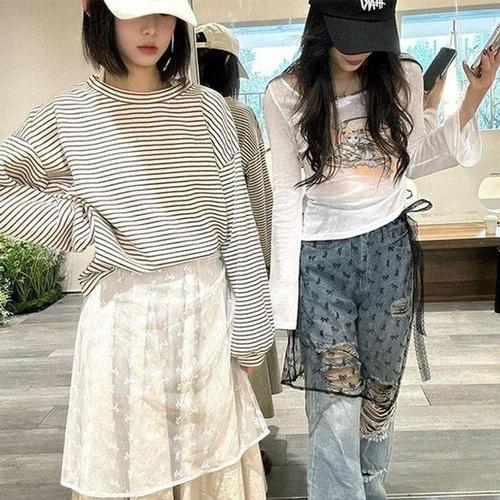 레이어드 이너 시스루 블라우스 망사 티셔츠