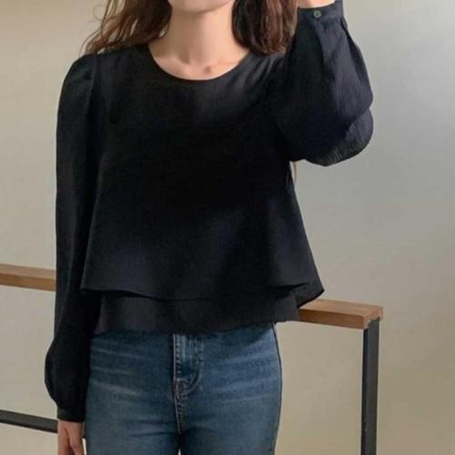 [옷자락] 여성 클래식 세미시스루 레이어드 뷔스티에 블라우스