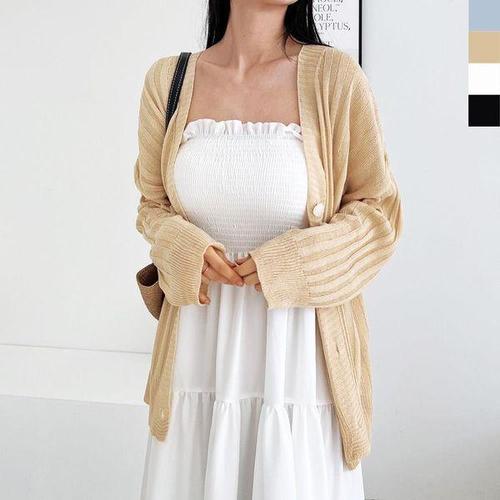 [옷자락] 여자 여리핏 쿨링 시스루 단추 롱슬리브 니트 가디건
