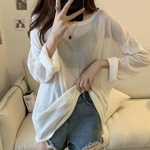 [엄지척]여성 얇고 통기성 여름 시스루 긴팔티 수영복 커버업_19612882_667501