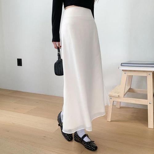 [신상오픈런]여성용 일상 찰랑이 시스루 레이어드 롱 치마