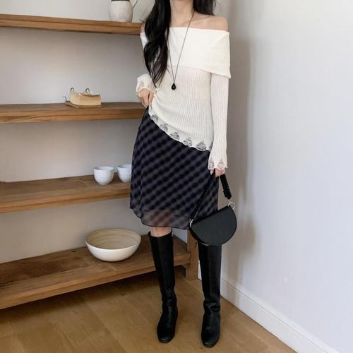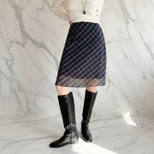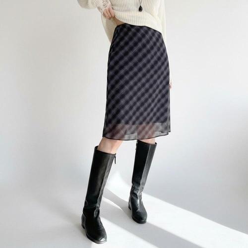 [미라클세븐]여성 체크 시스루 미디 스커트 간절기용
