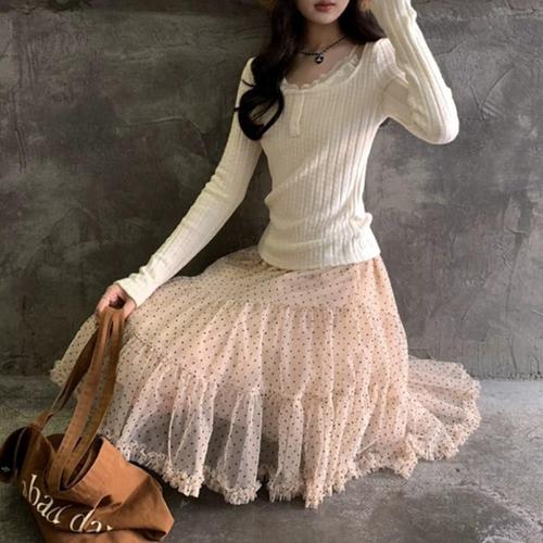 [신상오픈런]여성용 봄 여름 시스루 도트 프릴 미니 스커트