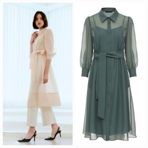 [숲]셔츠 칼라 벨티드 시스루 원피스(OY5OPTG)
