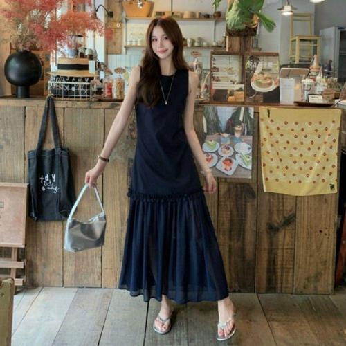 [에이비에프지]비즈디테일 시스룩 민소매 롱원피스 APY3QO41I