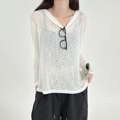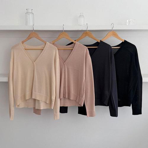 [옷자락] 여성 슬림 니트 브이넥 시스루 봄철 커버업 긴팔 카디건