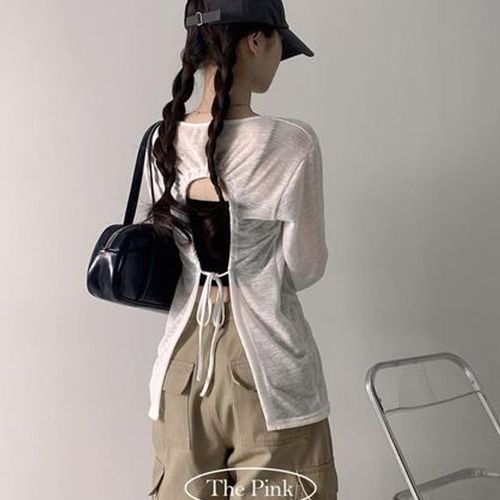 더핑크 / 페라 오버핏 백 홀트임 리본 시스루 긴팔티