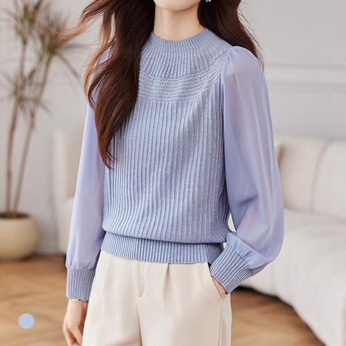 [셀러허브_여성트랜드패션]ONM 여성 심플 3컬러 시스루 목폴라 블라우스 긴팔티