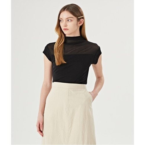 [GGPX]페미닌 시스루 반하이넥 슬림 여성 티셔츠 (GOBLW016D)