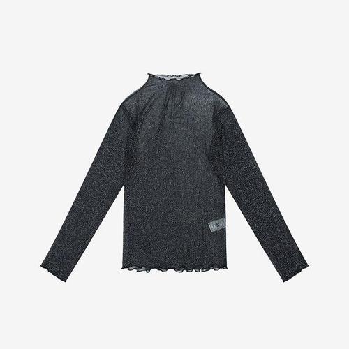 [옷자락]여자 프릴 시스루 레이스 폴라넥 긴팔티셔츠