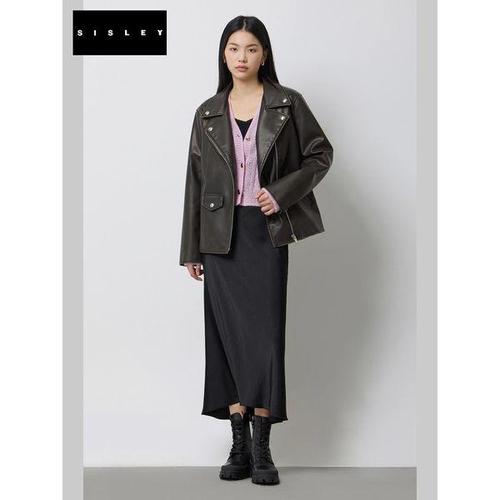 여성용 인조 가죽 재킷 2025 신상 가을 블랙 긴 소매 페블 재킷 모터사이클 스타일 개성 있는 여성 재킷