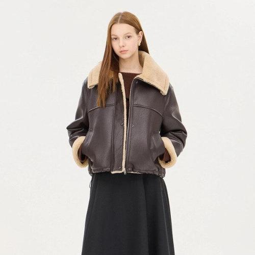 [시슬리]넥 버클 집업 인조 무스탕 (SALEC1561 다크브라운,블랙)