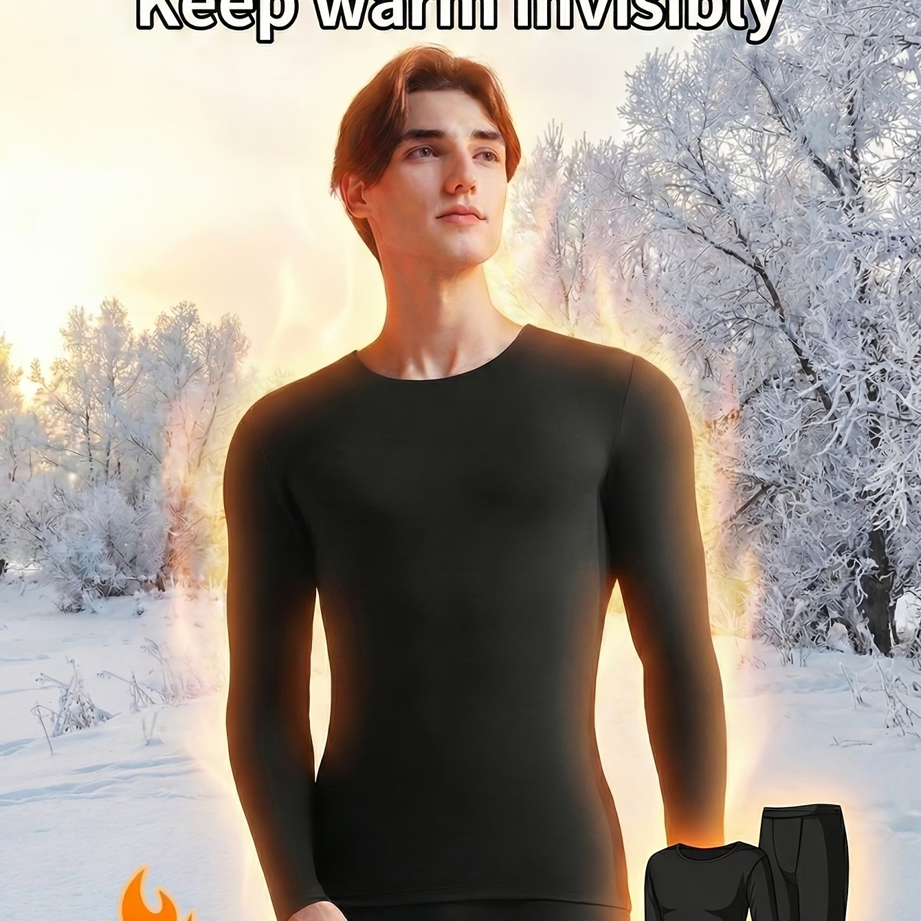 TEMU 남성용 초박형 보온 통기성 편안한 소프트 베이스 레이어 스킨 케어 세트 (가을용, 상하의 따뜻한 속옷 2종 포함)