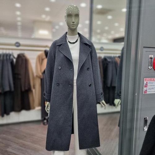 시슬리 9033 블랙클라우드그레이 울혼방 루즈핏배색랩코트 [2]