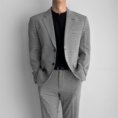 뉴메이드 / 봄 여름 시어서커 고방 체크 정장 수트 세트