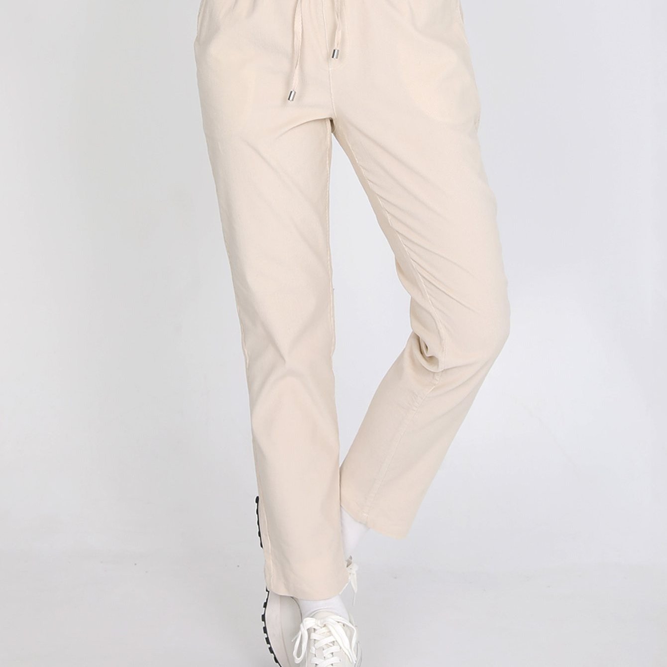 TEMU 여성 피치 약기모 춘추 골덴 밴딩 바지 편안한 활동복/일상복 데일리 만능 팬츠 레이디(AA33LP093W)