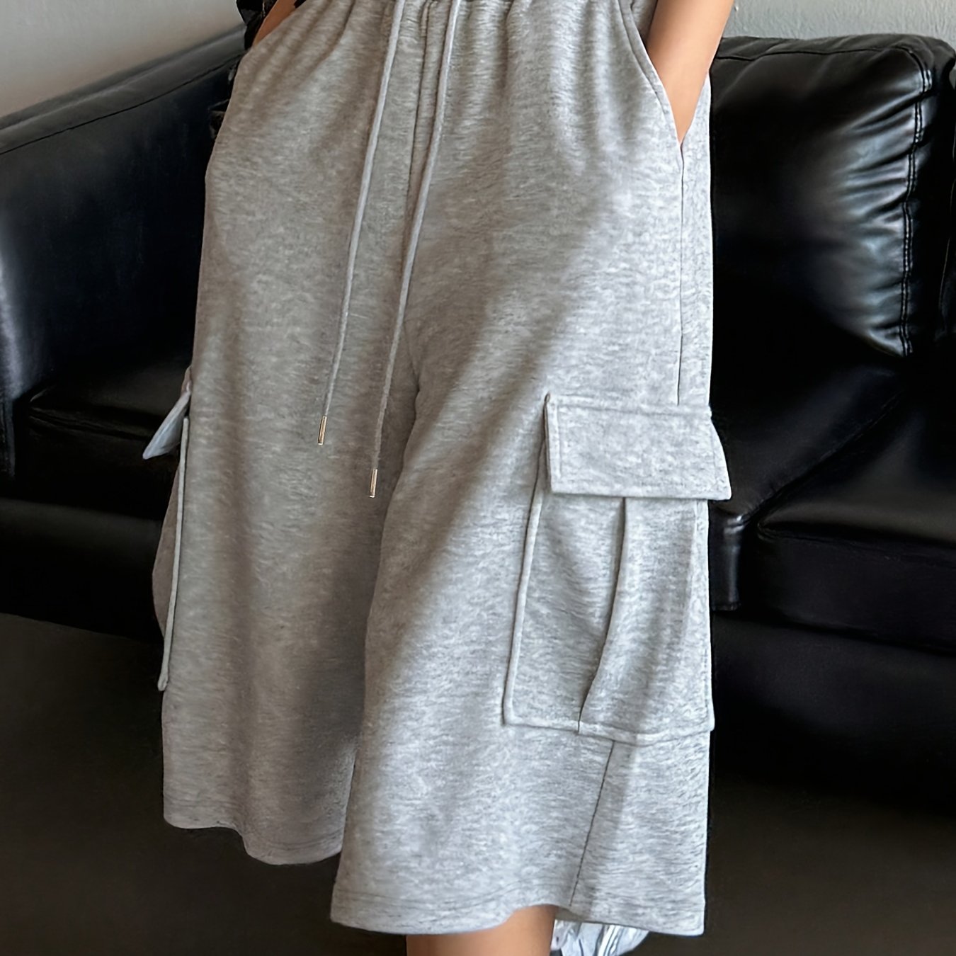 TEMU 여성 솔리드 컬러 루즈 드로스트링 카고 반바지 캐주얼 웨어