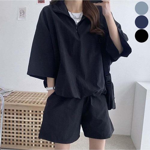 [셀럽하우스]여자 KOOU0403 여름 반집업 시원한 아노락 반바지 추리닝 세트
