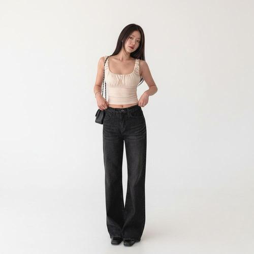 |CHTA1E9|여성용 여름 시원한 기본 셔링 크롭 나시탑