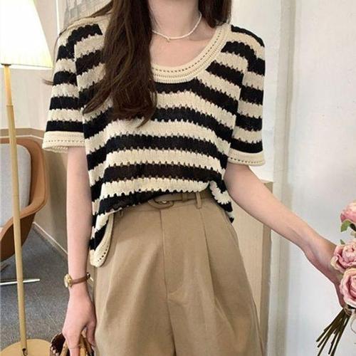 [에이치플러스몰]시원한 인기 여름패션 여성 스트라이프 감성 펀칭 배