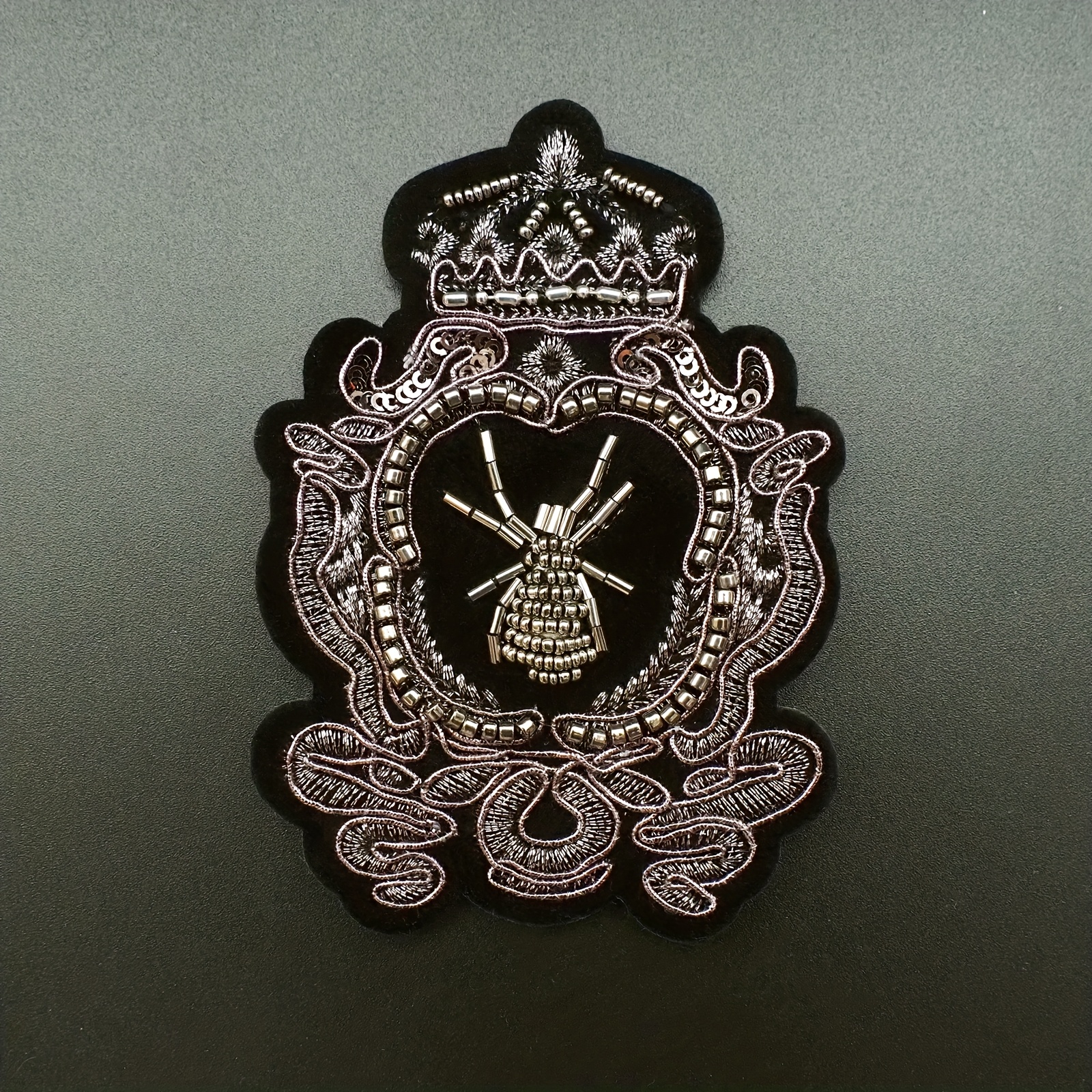 TEMU 1pc 빈티지 글래머러스 스타일 자수 패치, 검은 벨벳과 은색 왕관 및 거미 패턴, 손수 베이지, 수선 및 기계 스티치 가능, 폴리에스터, 의류/백팩 장식용, 남녀 공용