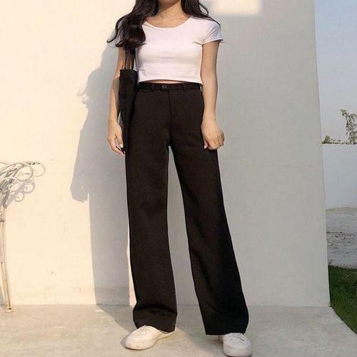 여성 패션 정장 바지 레이디 통기성 헐렁한 높은 허리 넓은 다리 여름 바지 레이디 스트레이트 다리 블랙 커피 클래식 바지