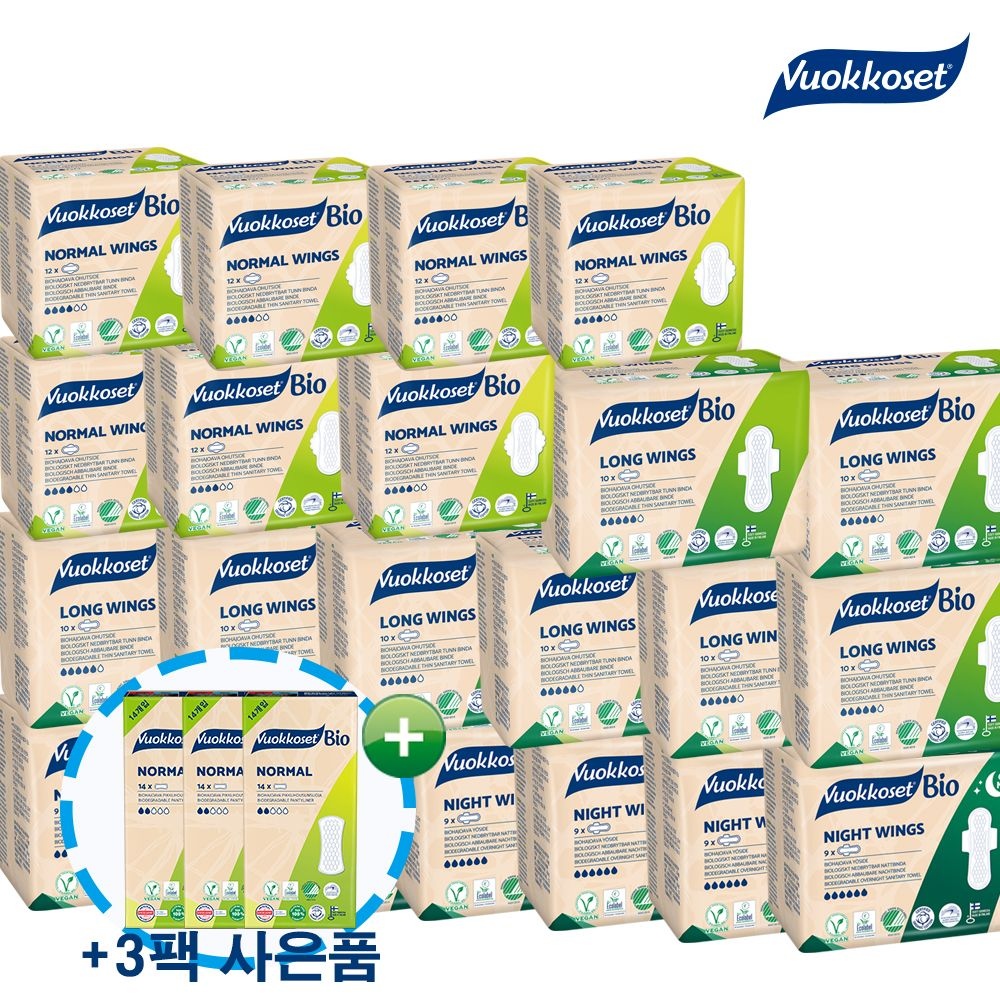 NEW 유기농 순면 생리대 혼합 3팩 (노말윙1+롱윙1+팬티라이너(14P)1)