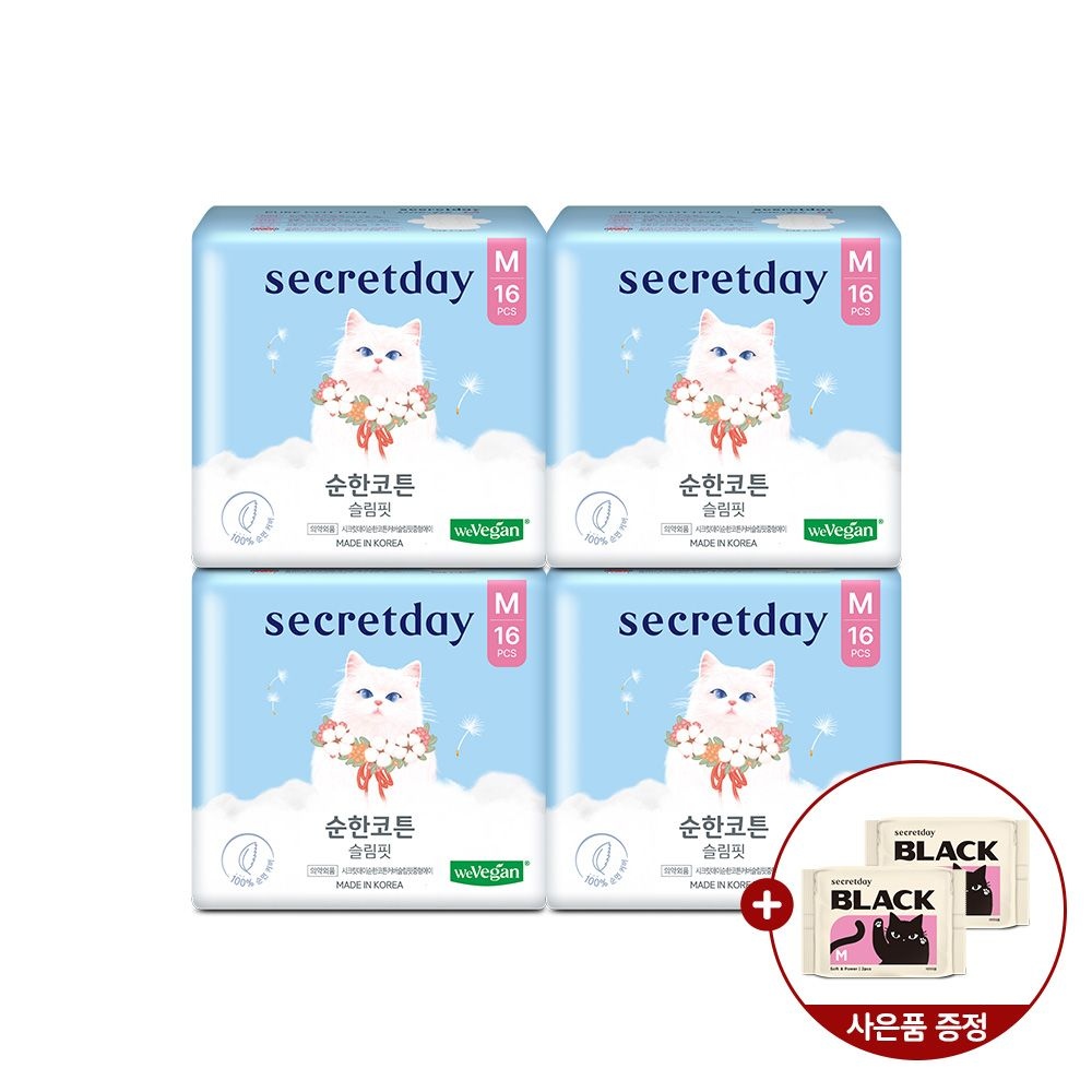 (한정/입오버 장당 400원대) 시크릿데이 생리대 블랙 중형 16PX7+1팩더 외 순한코튼/유기농