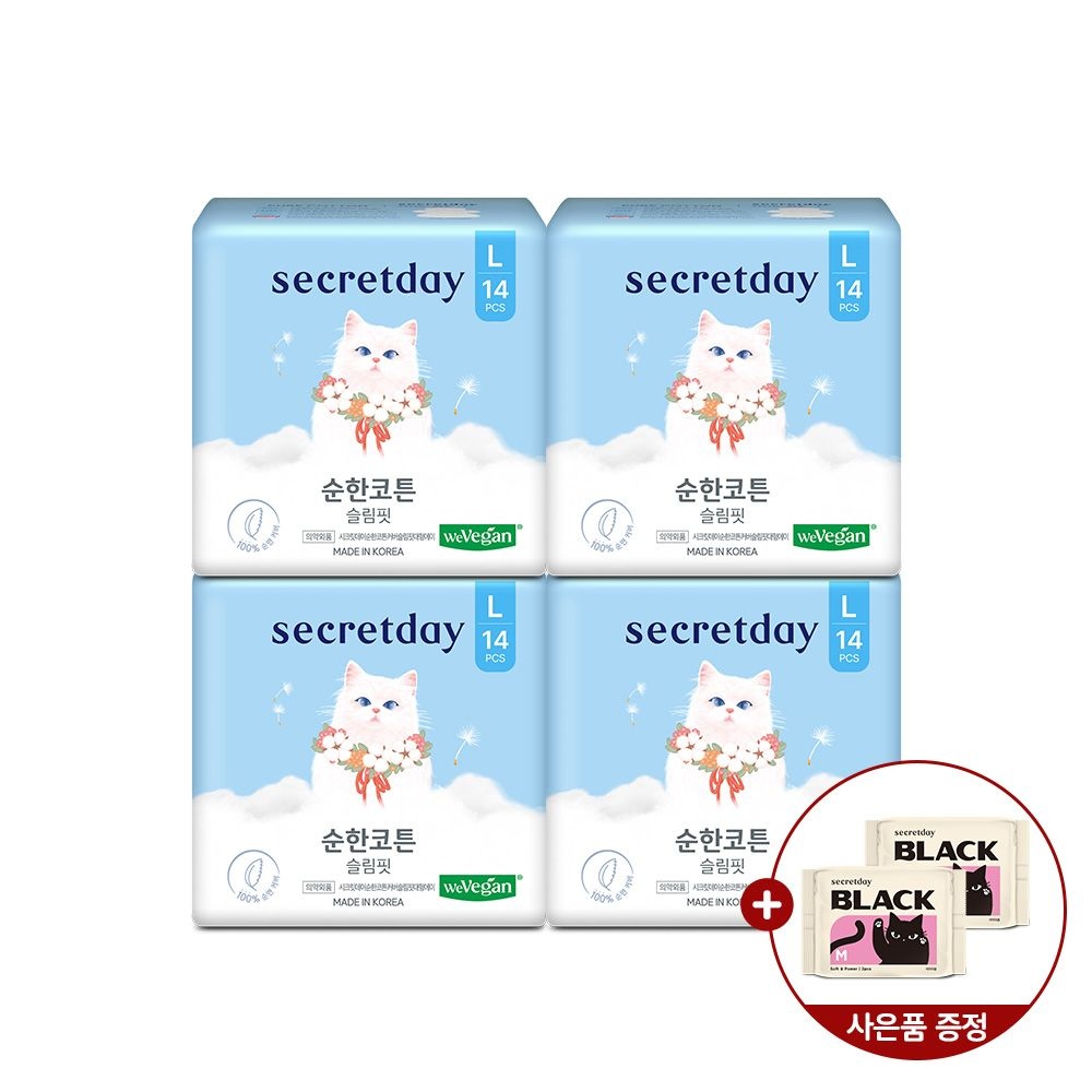 시크릿데이 블랙 중형 16P 4팩+대형 14P 3팩+롱라 20P 2팩+순한코튼 슬림핏 중형2P 증정Y